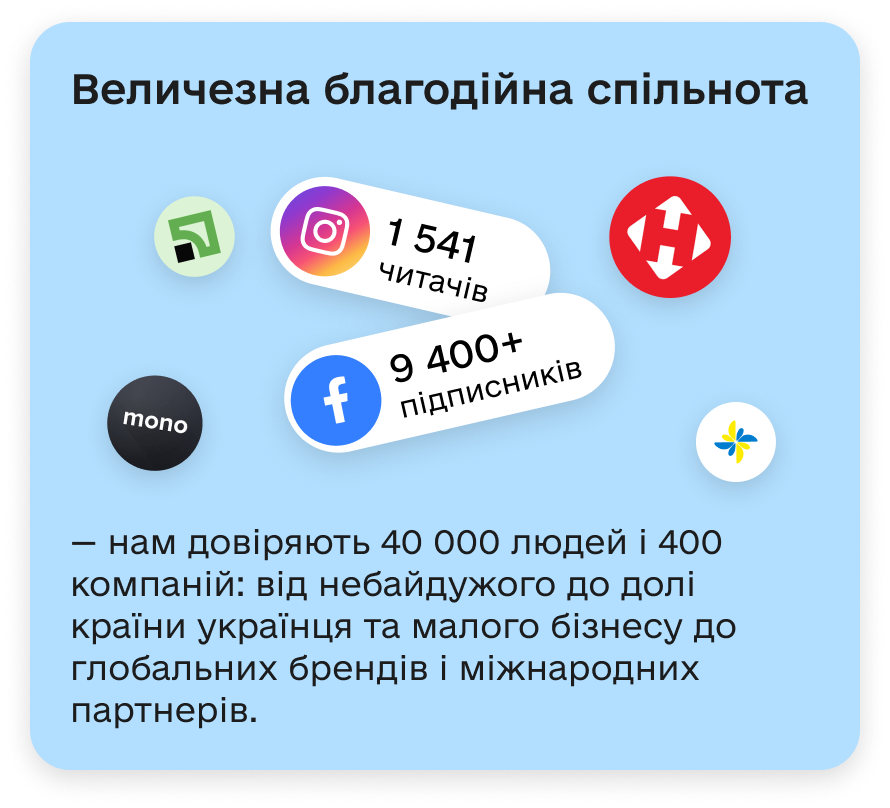 зробив перший крок і разово підтримав збір або благодійний проєкт.