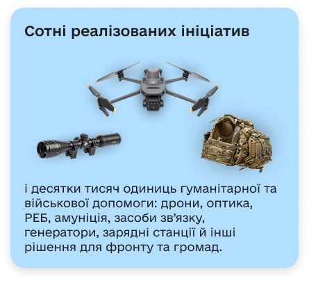Прямо зараз ми акумулюємо кошти для критичних потреб українських підрозділів. І навіть найменший ваш внесок сьогодні — це ще один тепловізор, додатковий бронежилет або запасна аптечка для того, хто боронить наш спокій і вдень, і вночі.