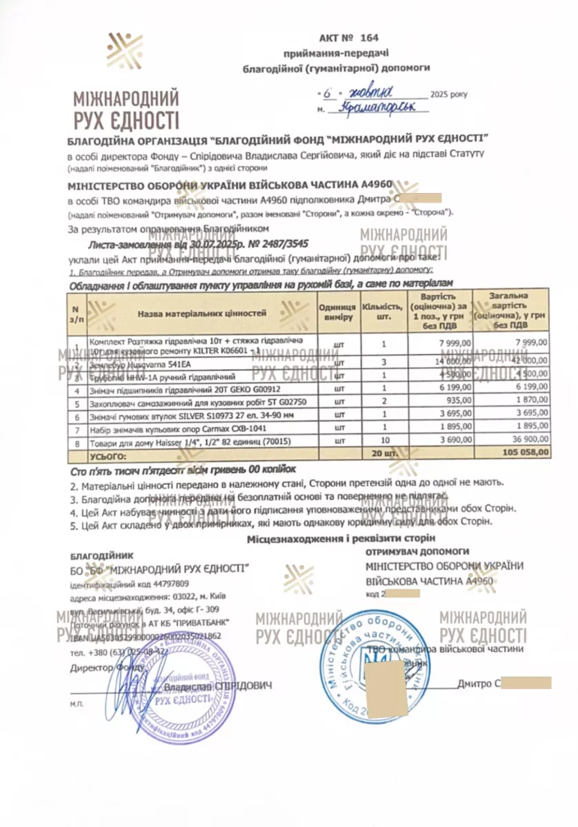 04.08.2025 12:36 | Charitable Foundation «International Unity Movement» | Приватбанк | 500.00 |