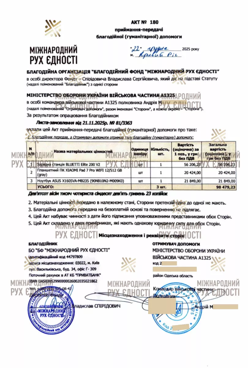 | 10.12.2025 14:41 | Приватбанк | 1 800.00 | Допомога ЗСУ |